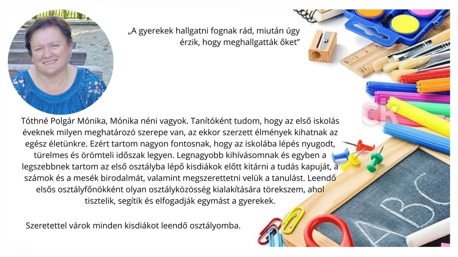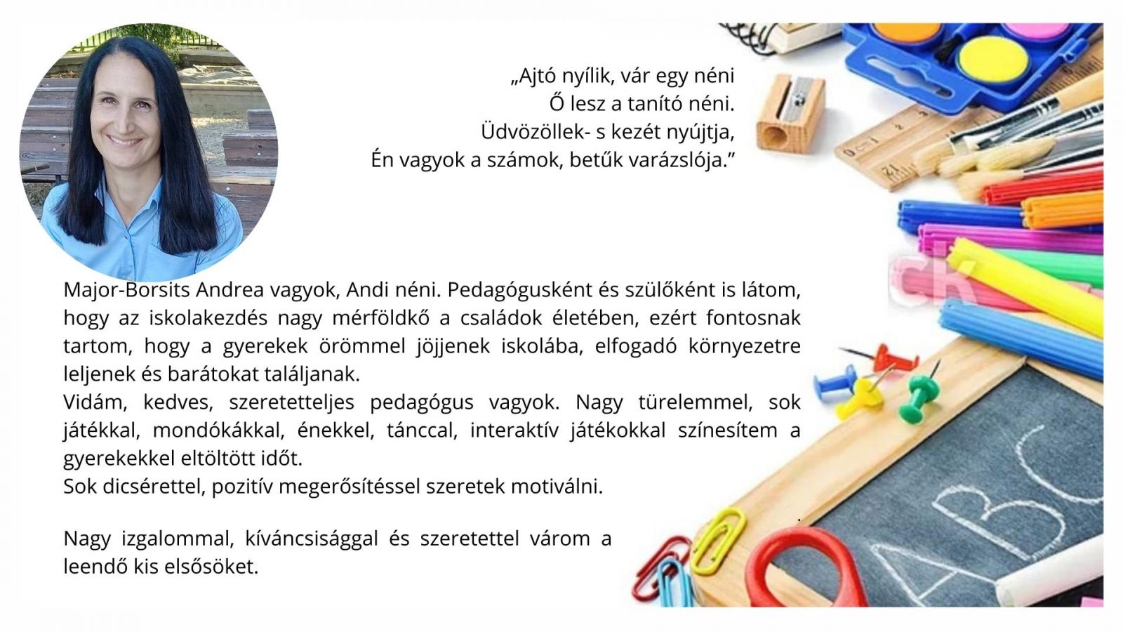 Tájékoztatjuk Önöket, hogy a 2026/2027-es tanév első osztályos osztályfőnökei Major-Borsits Andrea és Tóthné Polgár Mónika