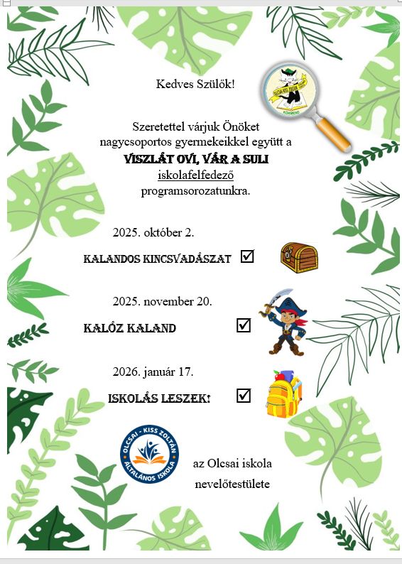 Az érdeklődőket szeretettel várjuk az „VISZLÁT OVI, VÁR A SULI!” programsorozatunkra.