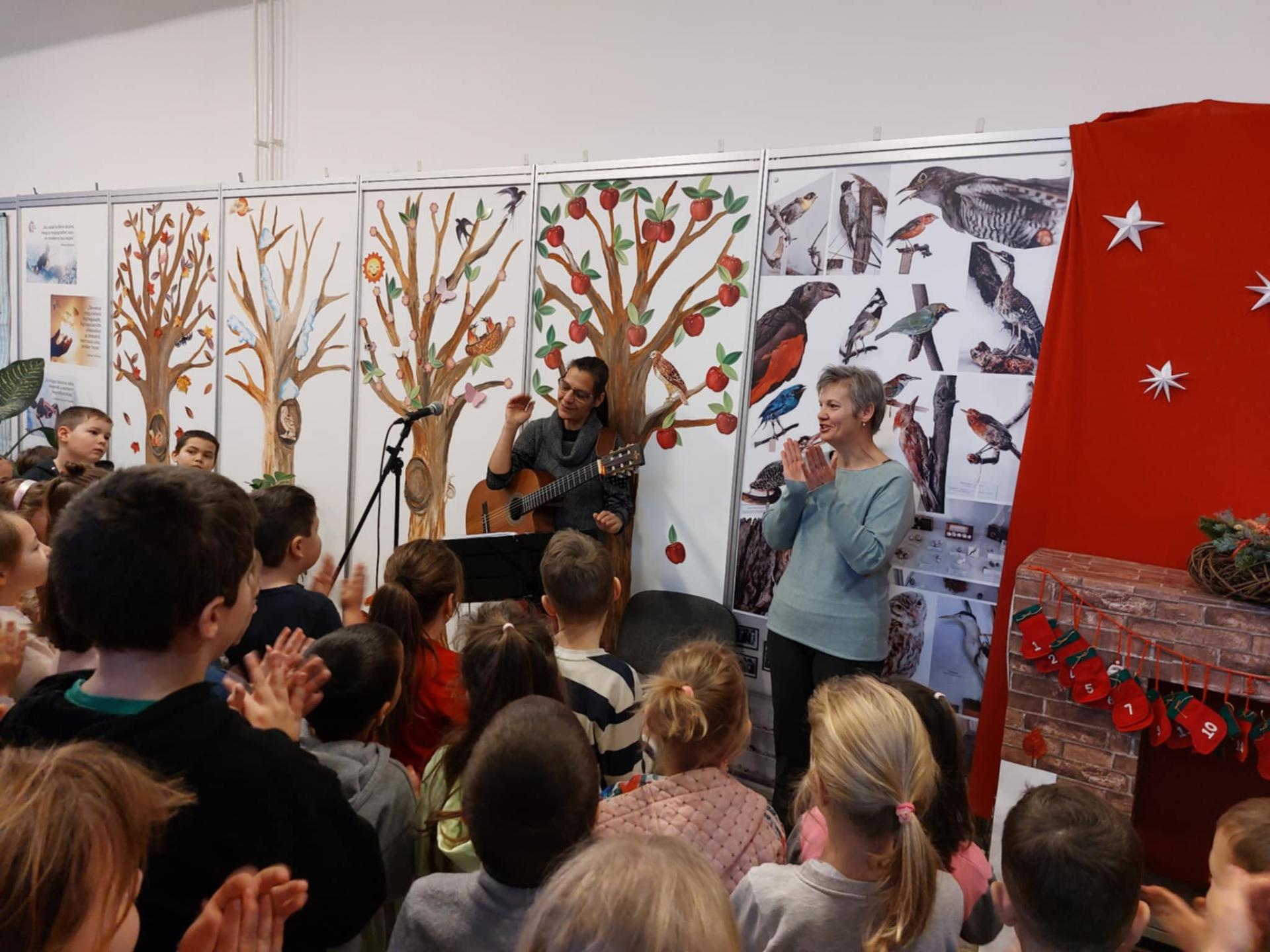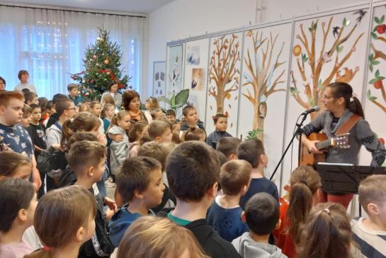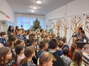 Hétfőn reggel újra összegyűltek alsó tagozatos diákjaink az adventi második gyertyagyújtásra. A hit mellett a remény gyertyáját Éva néni gyújtotta meg nekünk. A karácsonyi hangulatot ezúttal vendégünk, Rajner Ágota varázsolta iskolánkba. A holló című meséjével kalauzolt el minket Betlehembe. Az út során gitárral kísért meghitt dalokkal színesítette a történetet. Vidámságával, kedves dalaival igazi ünnepet varázsolt. Előadása közös énekléssel zárult. Köszönjük szépen Ágota néninek, hogy elfogadta meghívásunkat!