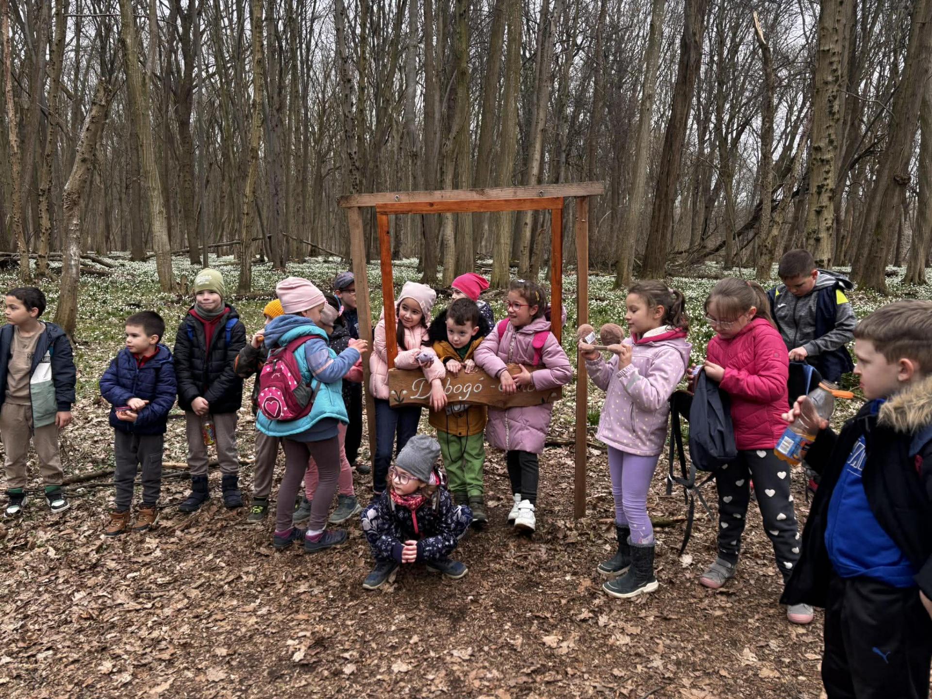 Kora ősszel kigondoltam, hogy az elsőseimmel majd nekivágunk a hosszú útnak. Nem engedtem, hogy valaki is kedvemet szegje. Az időjárás is az időponthoz közeledve elbizonytalanított, az a sok nehéz hó, ami az elmúlt héten leesett, nem csak nekem adta fel a leckét, de még az erdő gyönyörű „szőnyegének” is. A Rába és a Pinka folyók vonalát követve, azok töltésén közelítettük meg a horvátnádaljai Dobogó-erdőben található tőzikést. A gyerekeknek a hosszú út során volt lehetőségük énekelni, beszélgetni, csillogó kavicsokat gyűjteni. Megfigyelhettük az egyéb csodás, színes pompában nyíló tavaszi virágokat is. Pár percig csukott szemmel, csendesen állva – ha nehezen is- beszippantottuk az erdő illatát, hallgattuk a madarak csicsergéseit. Kellemesen elfáradva, élményekben gazdagon tértünk vissza az iskolába.