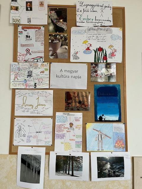 A magyar kultúra napjáról iskolánkban is megemlékeztünk. A magyar szakkörös diákok faliújságot is készítettek munkáikból.