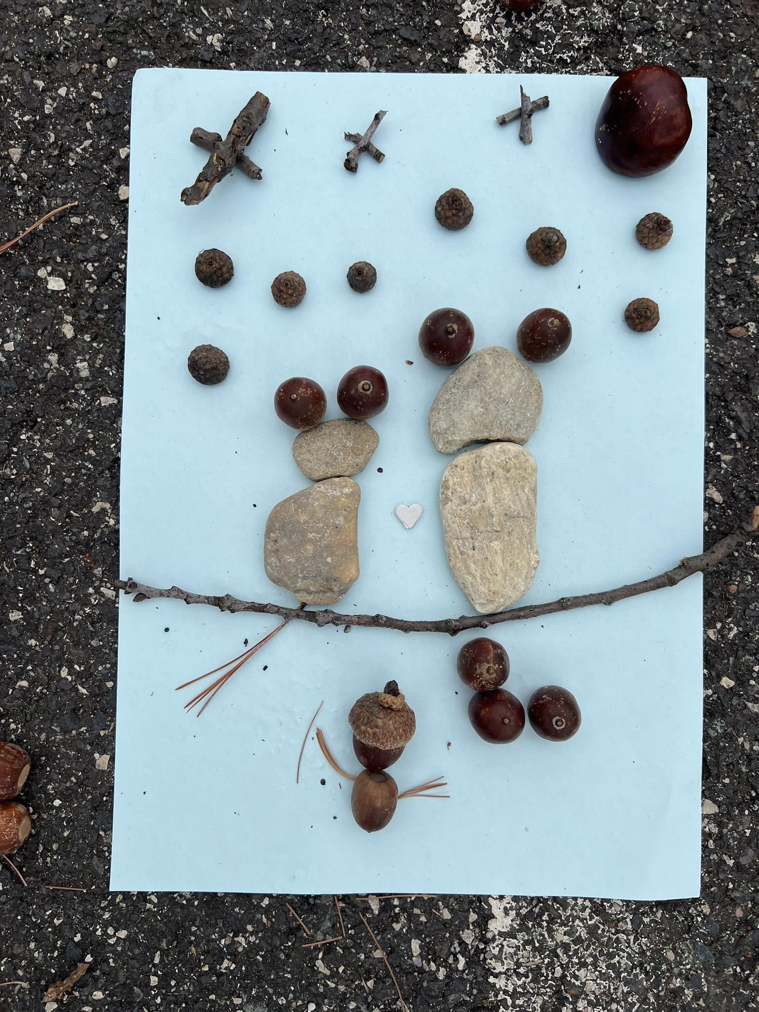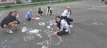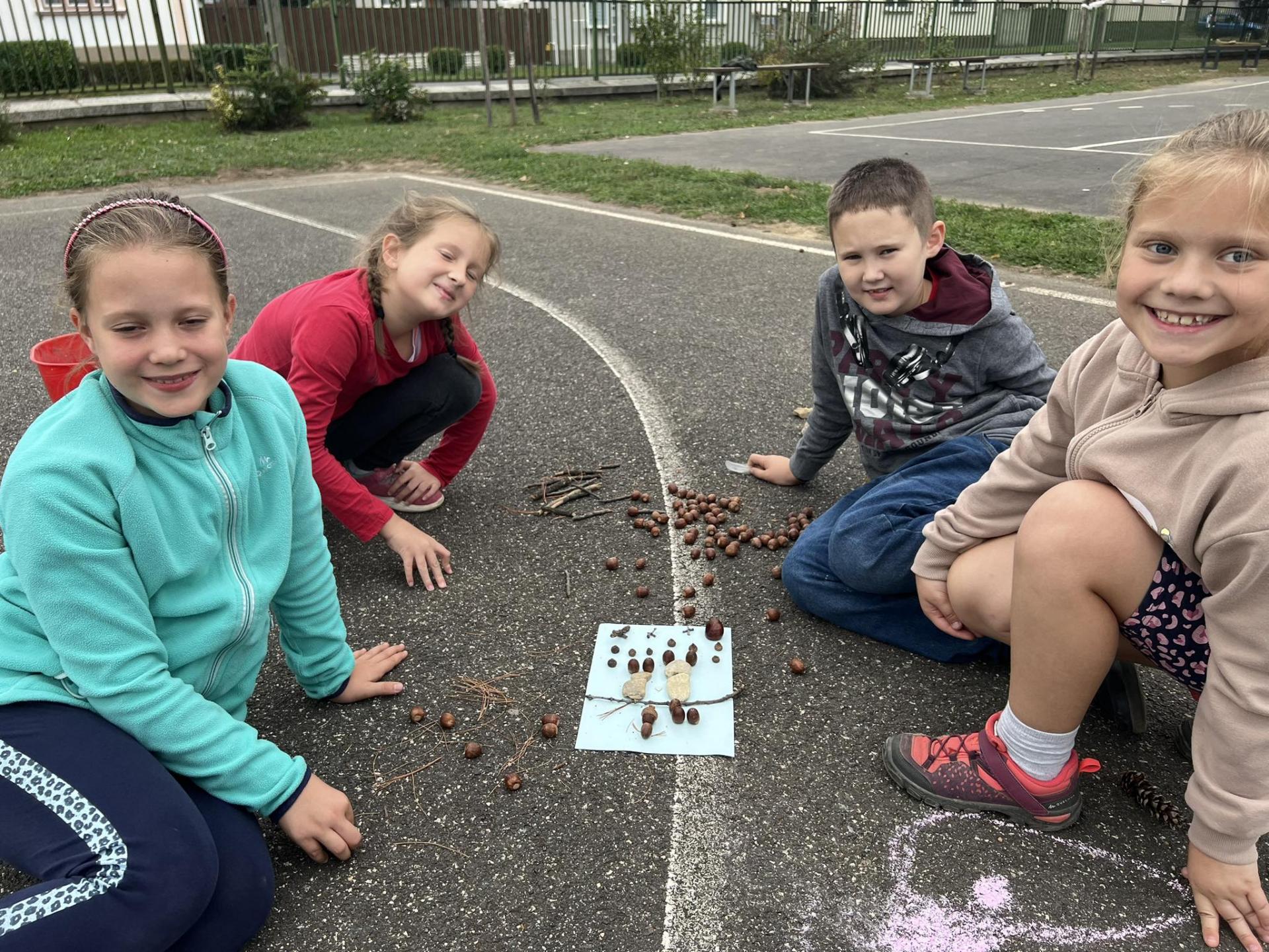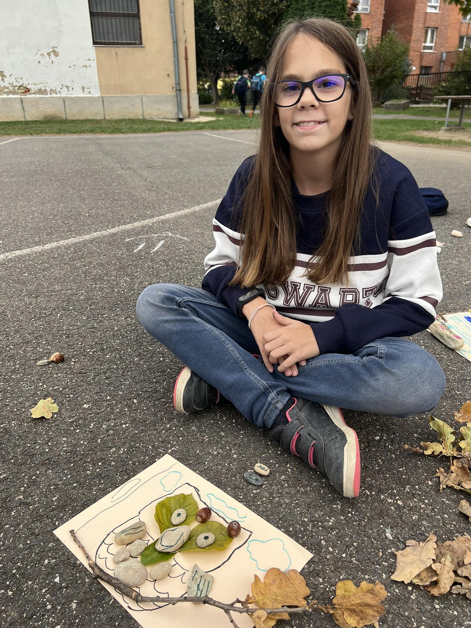 A jeles napot október 4-én iskolánkban is megünnepeltünk a magunk módján, kreatívan. A rajzszakkörös gyerekek kis csoportja a tantermen kívül, a szabadban alkotott. A természetből vett anyagokat: köveket, terméseket, ágakat gyűjtöttek és azokból készítettek állatokról szóló képeket. Az alkotók egyre több figyelmet kaptak, az udvarra érkező 5.b-sek is csatlakoztak hozzájuk. Előkerültek a színes kréták, így születtek a kosárpályán az állatokról szóló vidám rajzok. A délelőtti tanórákon Assisi Szent Ferencről beszéltünk és „állati” jó dolgokat gyűjtöttek tanulóink kedvenceikről az internet segítségével.