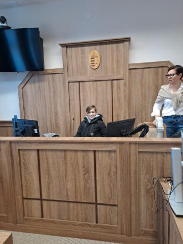 A 7.b osztályosok a Körmendi Járásbíróságon jártak. Az épület minden szegletét felfedezhették. Szó szerint bejárták minden zugát a pincétől a padlásig. Betekinthettek az irattárba, a bűnjeleket tároló raktárba és a bírónő saját irodáját is megnézhették, ahol rengeteg irat sorakozott, melyek a jelenleg tárgyak ügyek dolgait tartalmazták. De természetesen a legérdekesebb helyiség a tárgyalóterem volt, ahol minden felmerülő kérdésükre választ kaptak. Távozókor a fémdetektoros kapun hagyták el az épületet, ami természetesen jelezte hangos sípolással, ha valaki tiltott eszközt birtokolt.