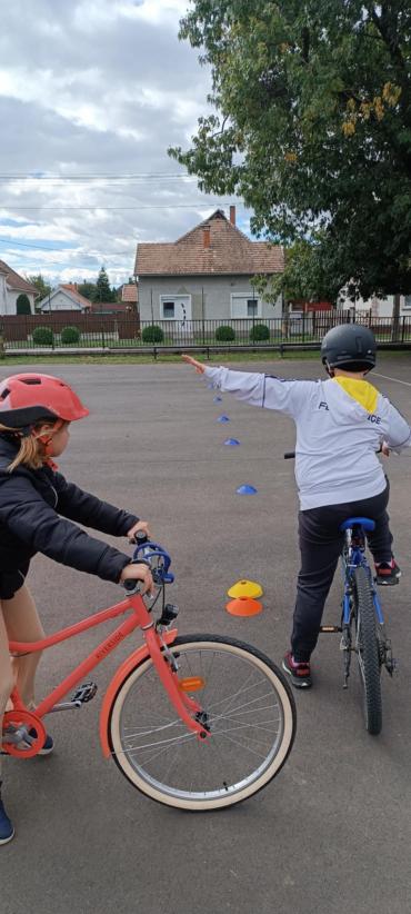 Az idei tanévkezdéssel együtt egy Bringasuli elnevezésű program is kezdetét vette, amivel a Bringaakadémia országos kezdeményezéséhez csatlakozott iskolánk. A program 4-6. osztályos tanulóknak hirdetett egy 4 alkalomból álló tanfolyamot, és nagy örömünkre rengeteg jelentkezőt vonzott. Így az elképzelésekhez képest 3 db 12 fős csoportot is indítani tudtunk szeptember közepén, október elején. A foglalkozásokra sisakokkal és biciklikkel felszerelkezve érkeztek a gyerekek. A képzés során megismerkedtek a kerékpár kötelező elemeivel, az indulás előtti ellenőrzés folyamatával, a megfelelő kerékpáros sisak tulajdonságaival, annak helyes viselésével, alapvető KRESZ szabályokkal. A tanulók kerékpáros képességfejlesztő feladatokon keresztül, játékos formában készültek fel a forgalomban való közlekedésre, majd az utolsó foglalkozás keretén belül az iskola közelében lévő kis forgalmú utcákban a gyakorlatban is kipróbálhatták az elsajátított ismereteket.