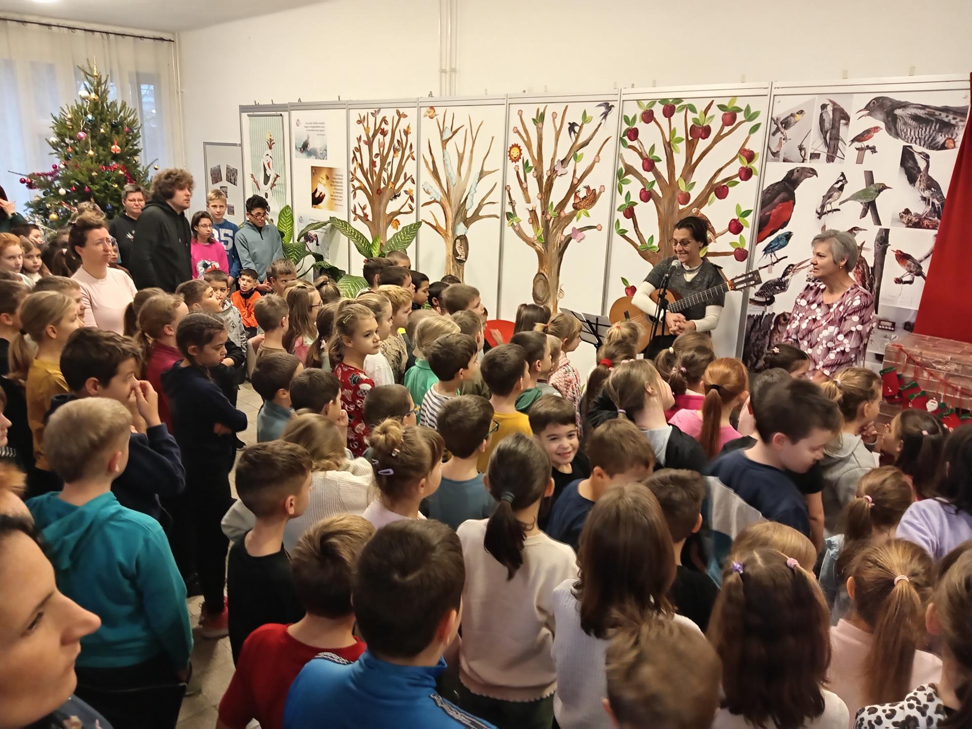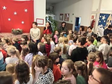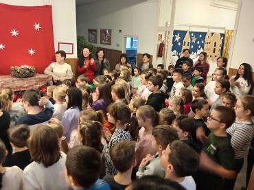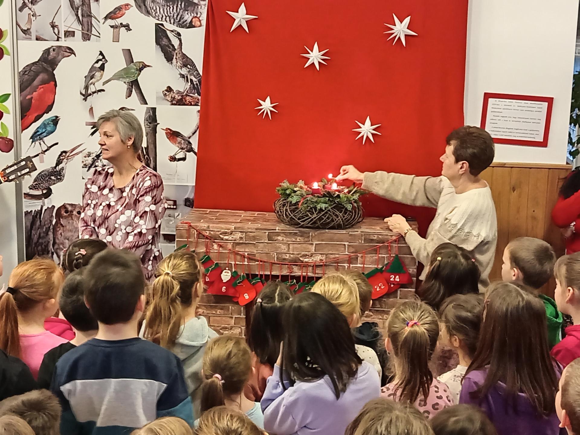 A harmadik adventi vasárnap alkalmából ismét összegyűltek alsó tagozatos tanulóink. Gabi néni gyújtotta meg az öröm gyertyáját. Ismét Rajner Ágota néni jött el hozzánk és mesélt a karácsonyi csillagról. Versekkel, dalokkal kiegészített történetéből megtudhattuk, hogy szeretettel, összetartással mi mindent tehetünk azért, hogy a karácsony fénye ne fakuljon meg. Csillagocska című dal refrénjét és a Lágyan szól a kis harang kezdetű dal közös éneklésével igazi karácsonyi hangulatba kerültünk. Örömmel, várakozással telve kezdtük meg az utolsó adventi hetet.