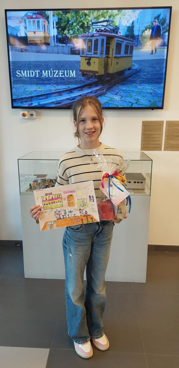 A múlt tanévben meghirdetett Jövő menzája rajzpályázat eredményhirdetését követően még sor került egy közönségszavazásra is. Haholt Korinna, 6.a osztályos tanuló alkotása az online felületen történő szavazáson sikert aratott, közönségdíjas lett. Nyereményét a Smidt Múzeumban Dr. Nagy Adrienn megbízott intézményvezetőtől vette át. Gratulálunk!