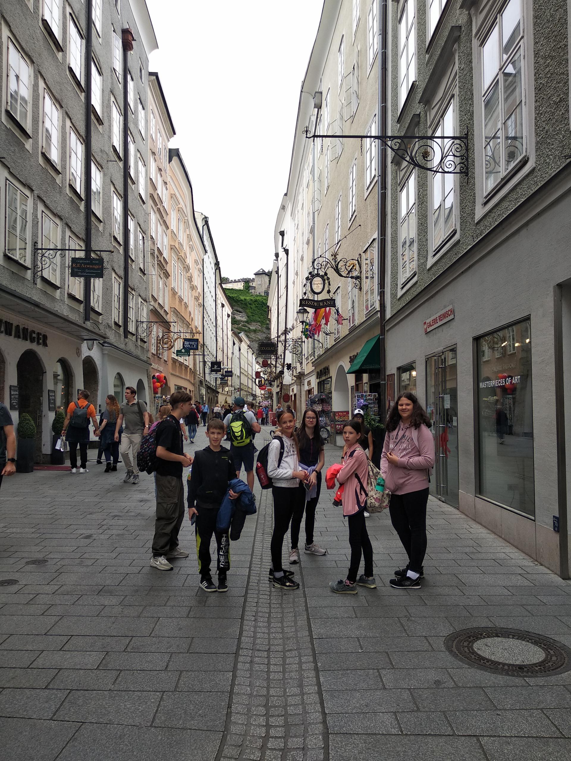 Jártunk a Wolfgangsee csodálatos környezetében, sétáltunk az ékszerdoboz szépségű Sankt Wolfgang városkában. Meggyőződhettünk arról, hogy a hegyek ölelte Hallstattot, a hasonló nevű tó partján, méltán nevezik Ausztria egyik legszebb településének. Jelentőségét az itt bányászott sónak is köszönheti. Bad Ischlben a Katrin-Seilbahnnal 1470 méter magasságba utaztunk az azonos nevű hegyre, ahonnan fantasztikus panoráma tárult elénk a Keleti-Alpok tavakkal és égbe törő hegycsúcsaival tarkított tájára. Foltokban még havat is találtunk, bár az hógolyózásra már alkalmatlan lett volna. Salzburg elővárosában, Hellbrunnban meglátogattuk az állatkertet, melynek bejárása, méreténél fogva, több napig is eltartott volna. Hellbrunn másik idegenforgalmi látványossága, a Kastély a vízijátékokkal nagy tetszést aratott tanulóink körében. Igaz, hogy egy kissé vizesek lettünk a legváratlanabb helyekről meginduló szökőkutak vizétől, de a kedvező időjárás hamar feledtette ezt az apró kellemetlenséget. Utolsó napunkon Mozart városában, Salzburgban indultunk felfedező útra. A Dóm-tér az óriási Dómmal, a Kapitel-tér a lovasfogatokkal és háttérben a Hochsalzenburggal felejthetetlen élményt nyújtott. Elidőztünk a város híres utcájában, a Getreidegassén, ahol az üzletek sajátságos cégérükkel hívták fel magukra a figyelmet. A 8. számú házat, Mozart szülőházát, szintén láthattuk. A „Haus der Natur” múzeumban tett látogatás igazi csemege volt a természet és a technika iránt érdeklődőknek.