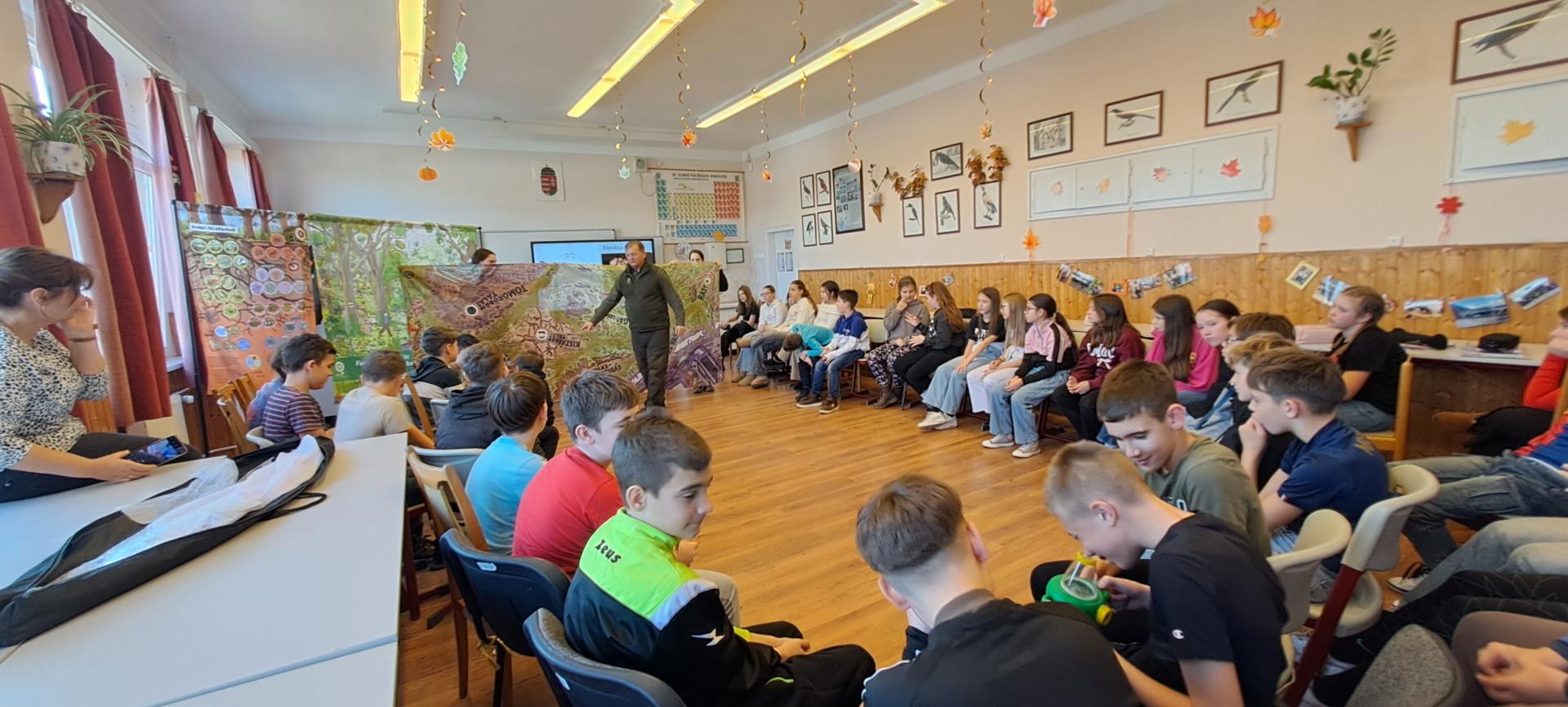 Az erdő, mint életközösség nagyon fontos számunkra. Hogy miért is mondjuk ezt? Erre a kérdésre kaphattak választ az 5., 6.évfolyamon és az eltérő tagozaton tanuló diákok. Jánosa László erdész irányításával megismerték az erdő feladatait és az ott élő élőlényeket. Megfigyelhették különböző nagyítók és mikroszkópok segítségével a mikronnyi nagyságú lakóit is. Játszhattak egyensúlyozó és párkereső játékot, és persze kérdéseikre is választ kaptak. Esett szó a gombák hasznáról, a lábnyomokról, a fák jelentőségéről, de még a turistajelzésekről is. Rengeteg ismeretet tanulhattak diákjain ezeken a foglalkozásokon.