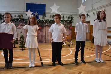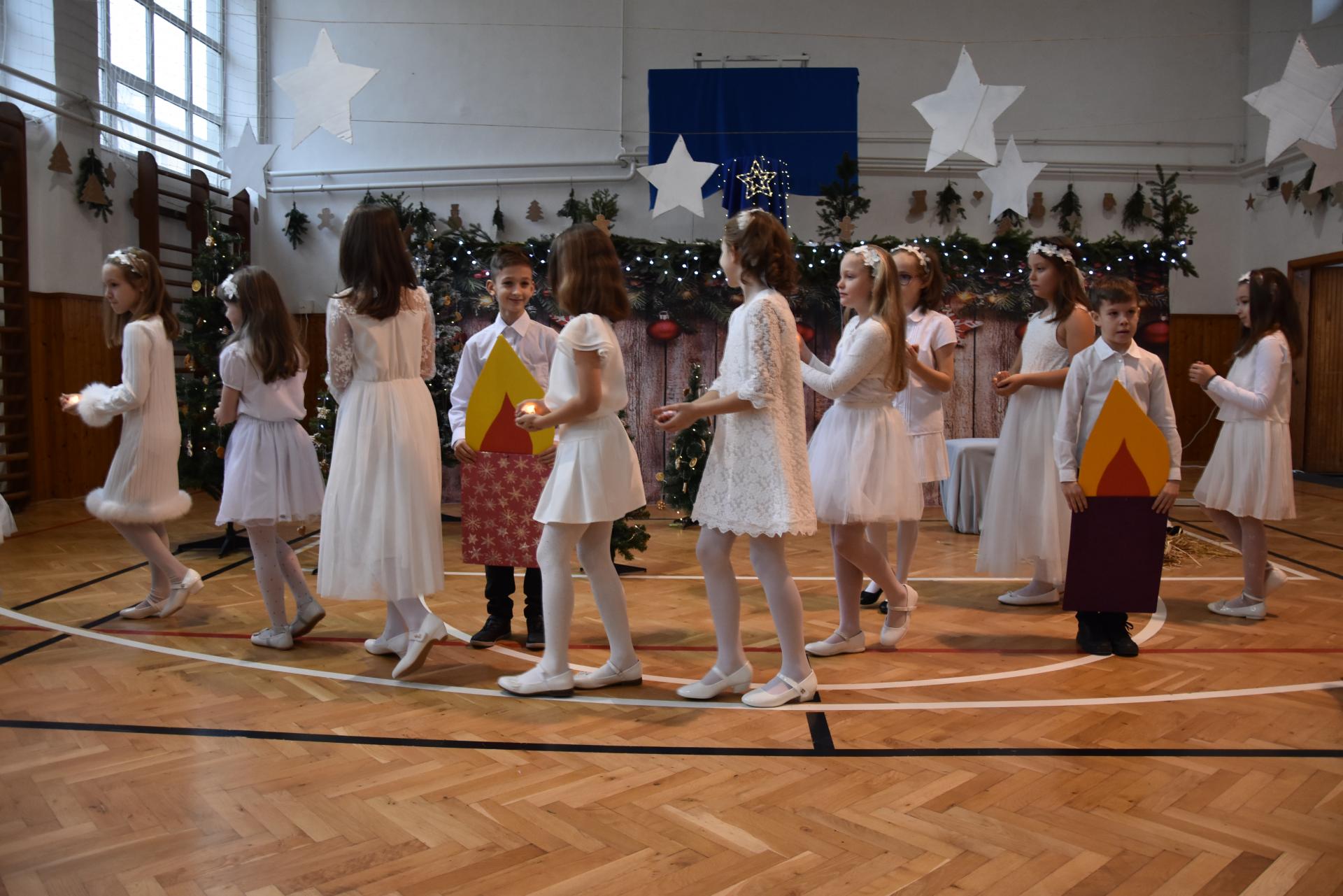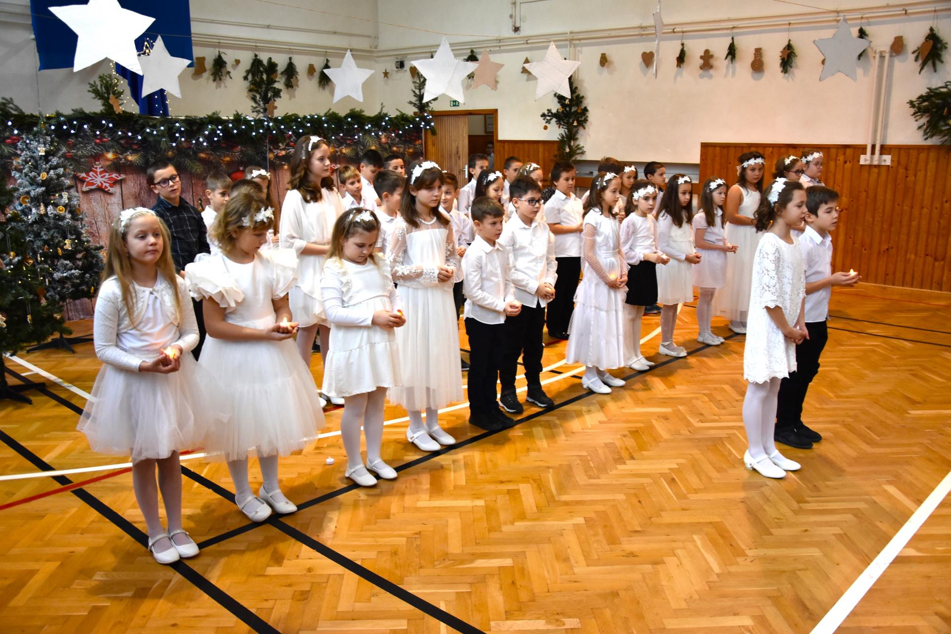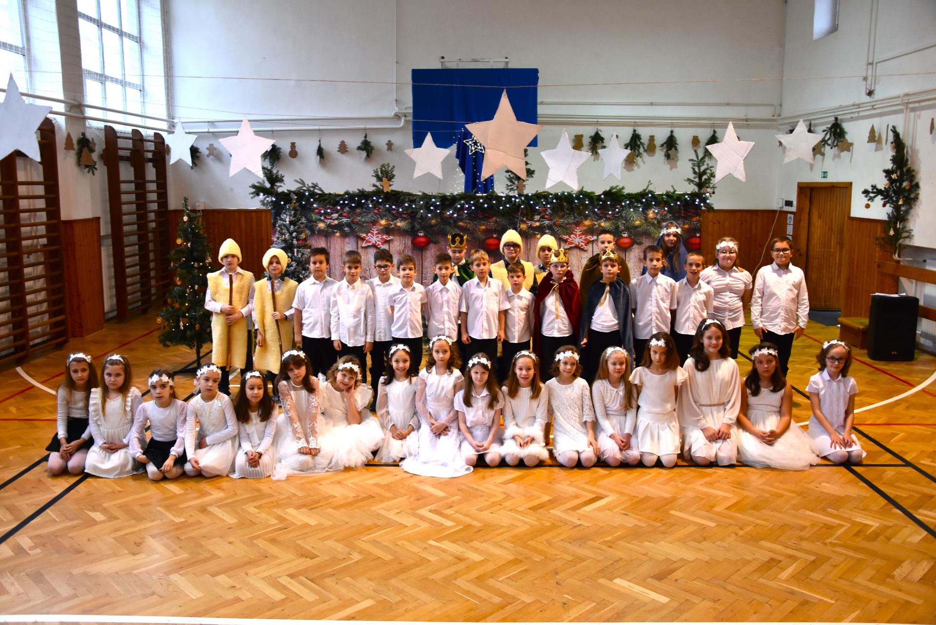 December 18-án tartottuk karácsonyi ünnepségünket. Hagyományosan a 3. évfolyam tanulói és tanítói készültek nagy lelkesedéssel, hogy délelőtt felsős társaiknak, délután szüleiknek és az alsós tanulóknak hozzák el a karácsony csodáját. Színvonalas műsorral nagyon szép díszletek között hangolódhattunk az ünnepre. Gratulálunk. Köszönjük a gyermekek, tanítóik, Balogh Árpádné és Károlyi Dóra munkáját, valamint a szülők segítségét.