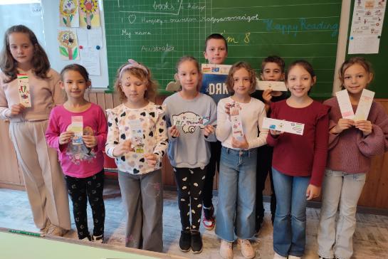 Ebben a tanévben is folytatódik a tanulóink körében népszerű könyvjelzőcsere program. Nemrég Ausztráliába indítottuk útnak az elkészített munkákat. Izgatottan várjuk a távolból küldött, könyvjelzőkkel teli válaszborítékot.