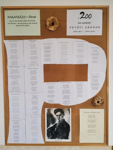 Irodalmi pályázatra 13 parafrázis íródott Petőfi Sándor Füstbement terv verse alapján, ami iskolánk irodalmi faliújságján is látható.