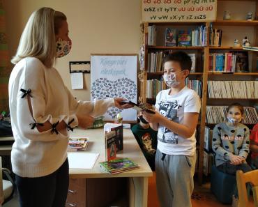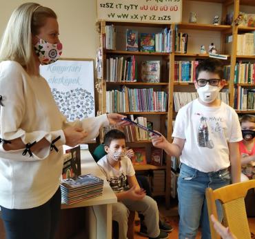 Minden versenyző jutalmat kapott, a 3. helyezett Murai Balázs (5.b) és a 4. helyezett Holdosi Adrián Máté (7.a) pedig könyvjutalomban részesültek, melyet Wágner Dávid könyvtárvezető megbízásából itt helyben adtunk át a diákoknak.