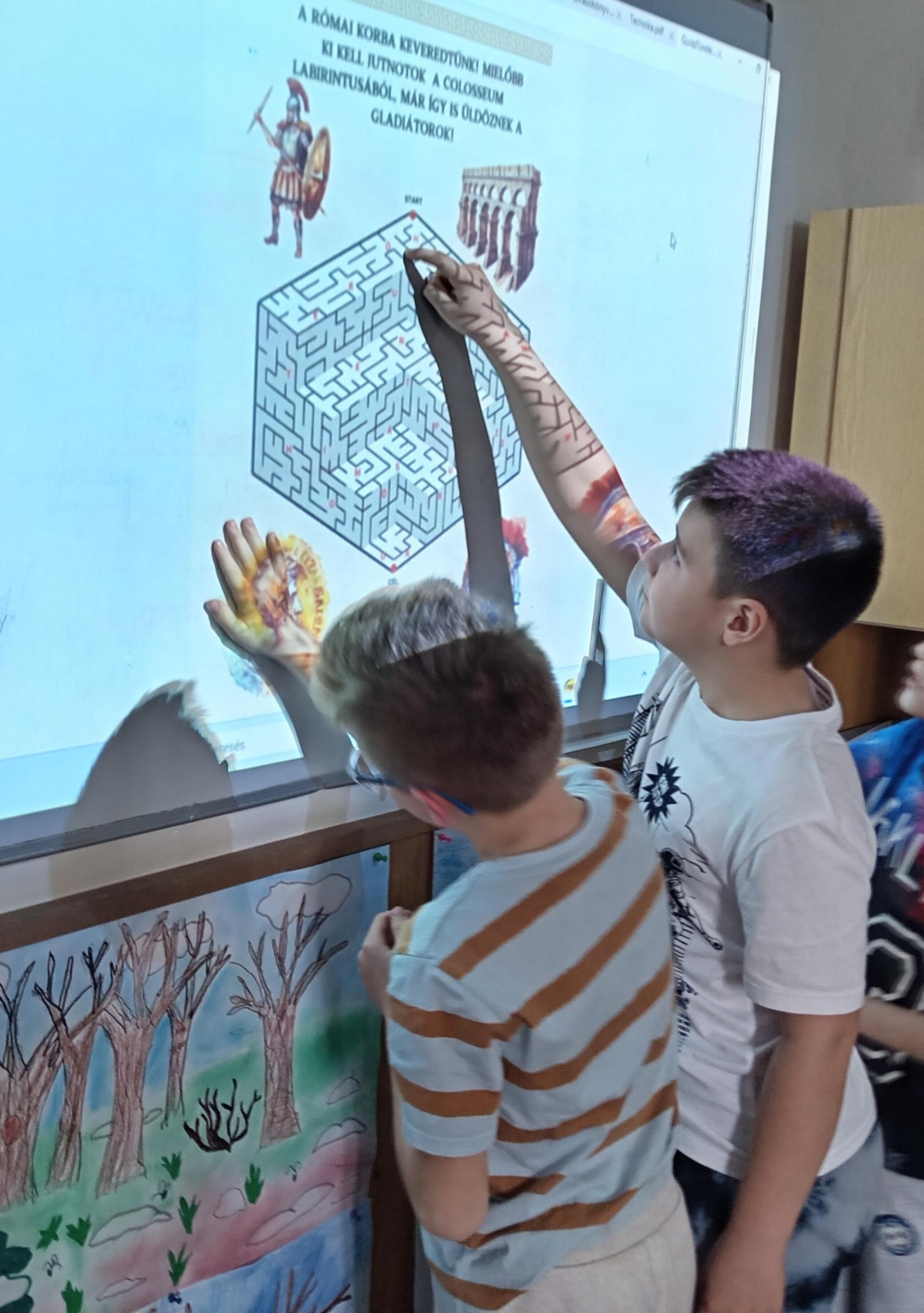 A 3-4. évfolyam tanulóira egy szabadulószoba feladatai vártak. A kód megfejtése után egy időgép repítette őket különböző történelmi korokon keresztül vissza a húsvétba. A feladatok segítségével jártak az őskorban, az ókori Rómában, de még a jövőben is, ahonnan aztán sikeresen visszatértek a jelenbe.