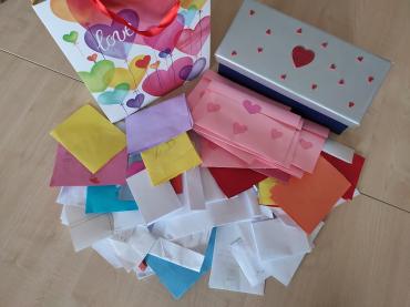 A legjobb rész természetesen a kézbesítés volt február 13-án. Az alsósoknál izgatott suttogás, felsőben visszafogott (de azért nagyon is kíváncsi) mosolyok jelezték: mindenki várta, vajon neki érkezik-e boríték. És igen több mint 240 üzenet került a padokra meglepetésként.