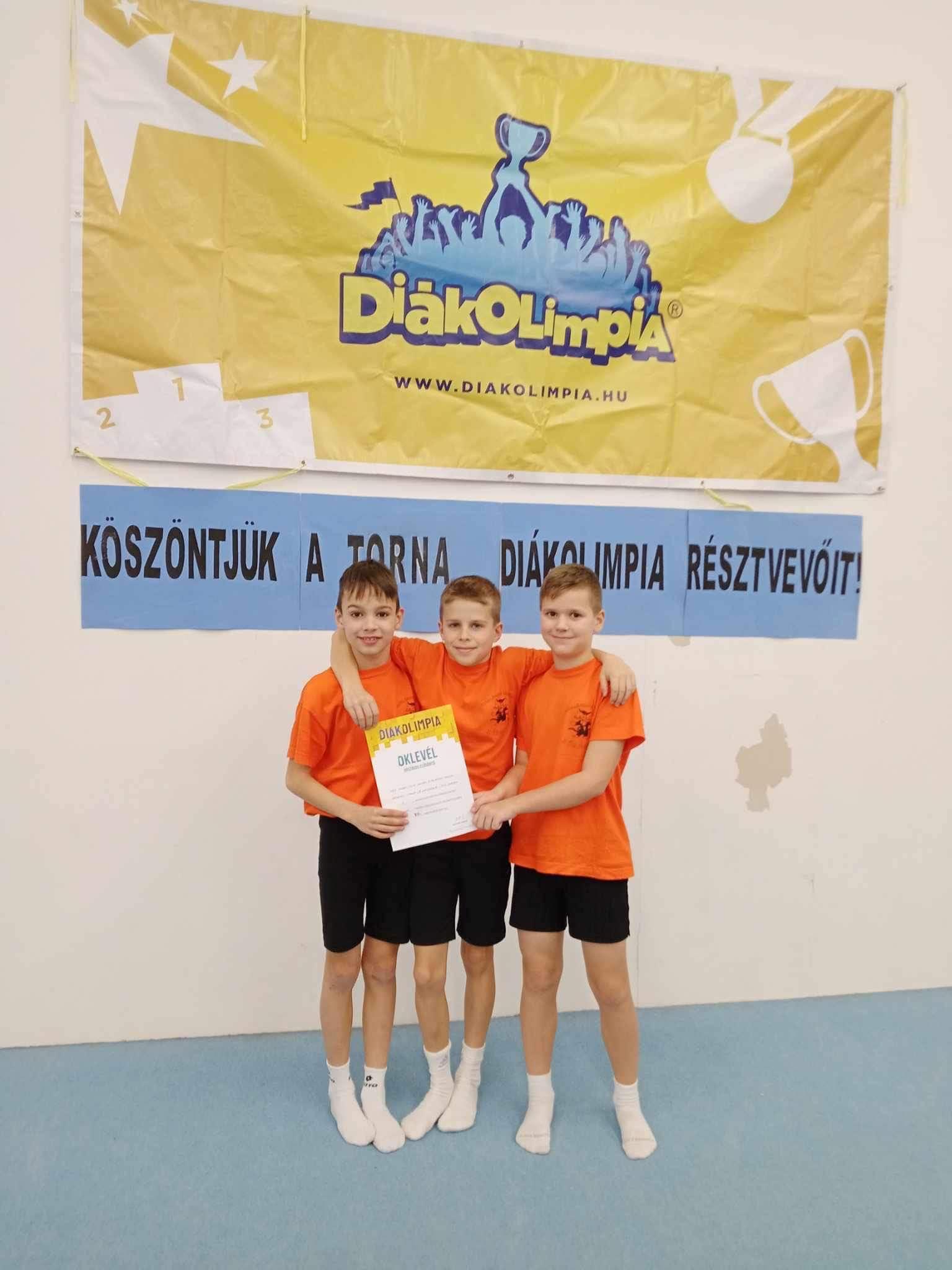 Volt, akinek ez volt az első tornaversenye, volt, aki már szerepelt a tavaly júniusban rendezett háziversenyünkön, de mindenkinek ez volt az első Torna Diákolimpiája. A hosszú út és a hajnali indulás ellenére is kihozták magukból a maximumot a fiúk, nagyon összeszedetten, koncentráltan versenyeztek. Sok tapasztalatot gyűjthettünk a versenyen és remek élményeket szereztünk, többek közt például megnézhettük a Testnevelési Egyetem egyik hallgatója által bemutatott nyújtó gyakorlatot is.
