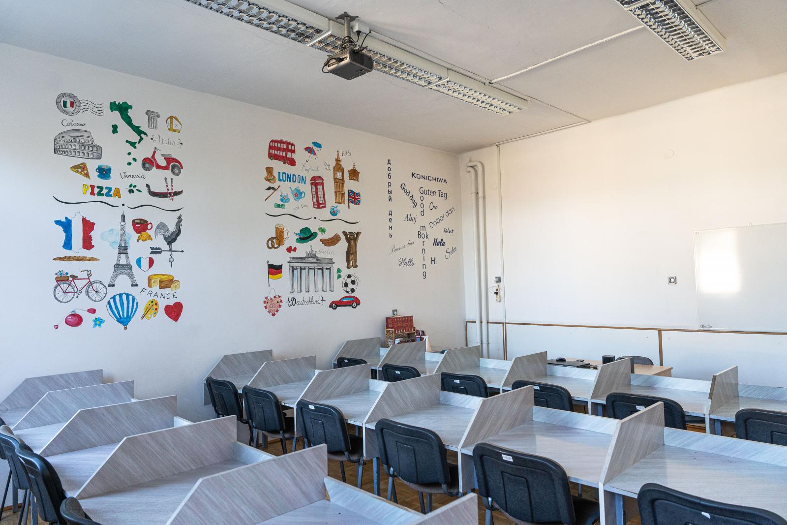 Nyelvi termünkben projektor és multimédiás számítógép segíti a kiscsoportos idegennyelv oktatást.